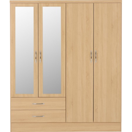 Nevada 4 Door 2 Drawer Mirrored Wardrobe Sonoma Oak Effect