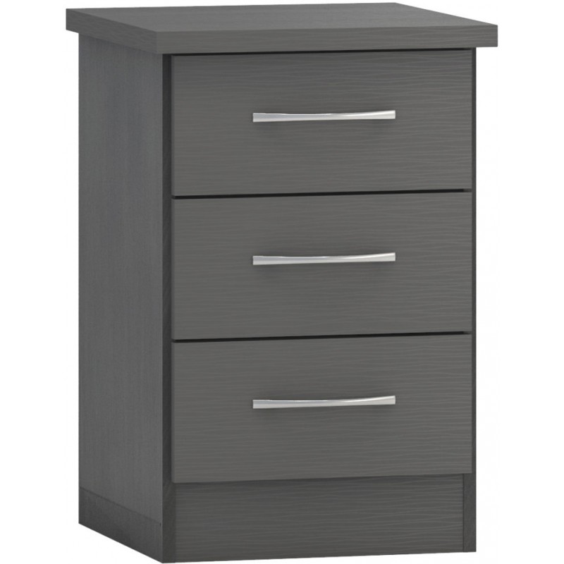 Nevada 3 Drawer Bedside 3D Effect Grey