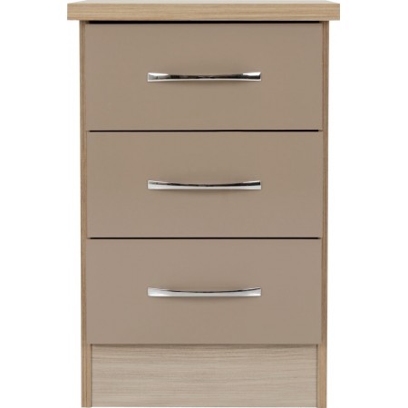 Nevada 3 Drawer Bedside Oyster Gloss/Light Oak Effect Veneer